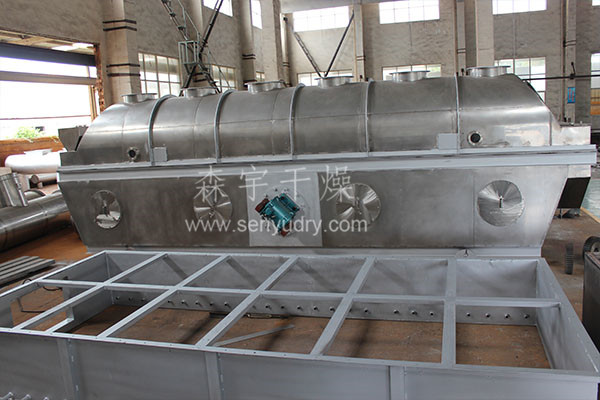 物料自進(jìn)料口進(jìn)入機(jī)內(nèi),在振動(dòng)力作用下,物料沿水平流化床拋擲,向前連續(xù)運(yùn)動(dòng),熱風(fēng)向上穿過流化床同濕物料換熱后,濕空氣經(jīng)旋風(fēng)分離器除塵后由排風(fēng)口排出,干燥物料由排料口排出。